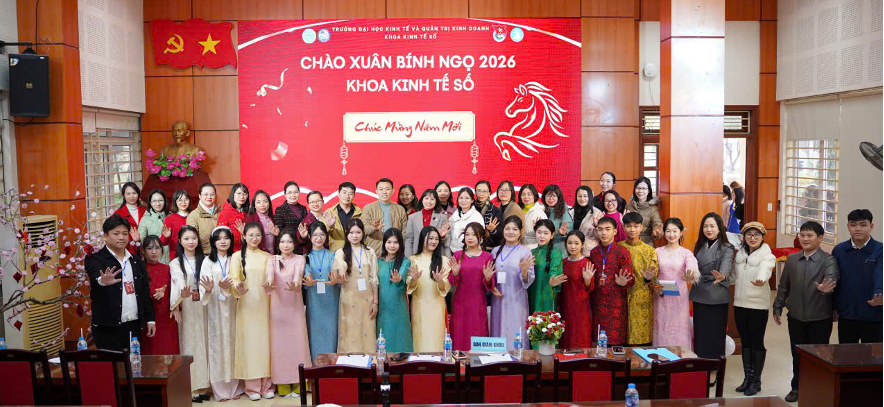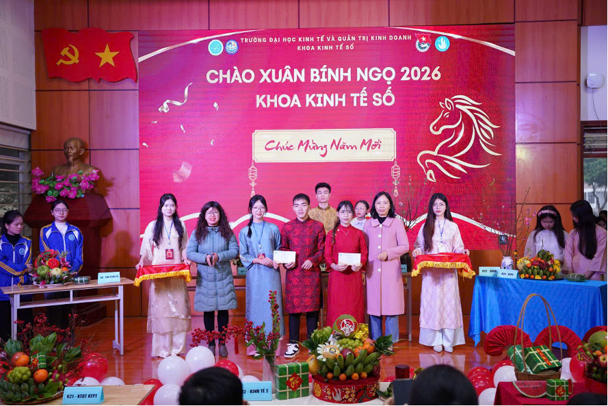 Trong không khí hân hoan những ngày cận Tết, chiều Chủ Nhật (26/01/2026) vừa qua, Khoa Kinh tế số đã tổ chức thành công rực rỡ chương trình: "CHÀO XUÂN BÍNH NGỌ 2026". Đây là dịp để thầy và trò cùng sum vầy, thắt chặt tình đoàn kết trước khi bước vào kỳ nghỉ Tết ấm áp bên gia đình.
